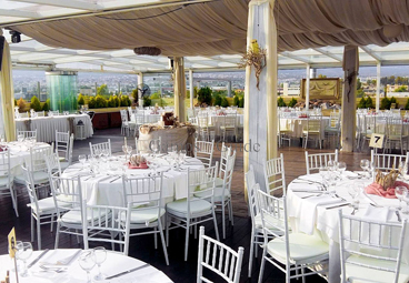 Δεξίωση γάμου σε roof garden ενδείκνυται και για γάμους στα τέλη της άνοιξης ή στις αρχές του φθινοπώρου, αρκεί να υπάρχει πρόβλεψη για τυχόν αλλαγή του καιρού προς το... αγριότερον!