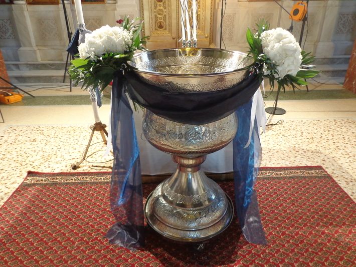 Μεταφορά ανθοσυνθέσεων απο την εκκλησία στο χώρο της δεξίωσης