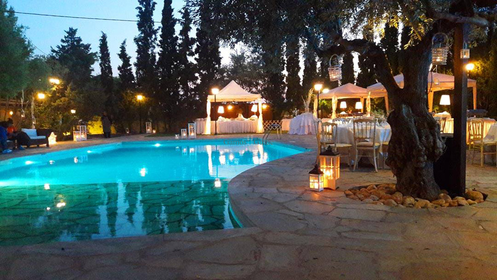 Φαναράκια διάσπαρτα στους χώρους του κτήματος, κεριά περιμετρικά της πισίνας...